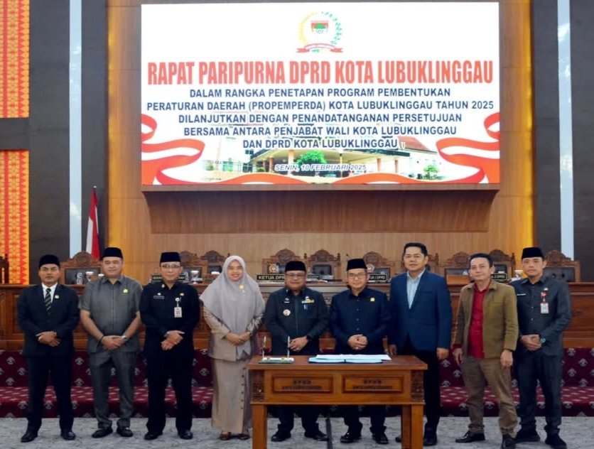 LUBUKLINGGAU, LINKNEWS – Dewan Perwakilan Rakyat Daerah (DPRD) Kota Lubuklinggau menggelar rapat paripurna dalam rangka penetapan Program Pembentukan Peraturan Daerah (Propemperda) tahun 2025. Rapat yang berlangsung di ruang paripurna, Senin (10/2/2025), juga dilanjutkan dengan penandatanganan persetujuan bersama antara DPRD dan Penjabat Wali Kota Lubuklinggau.