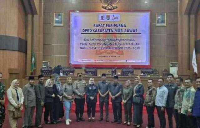 Ketua DPRD Musi Rawas menjelaskan berdasarkan hasil pleno KPU Musi Rawas yang disampaikan kepada DPRD Musi Rawas, KPU Musi Rawas menetapkan pasangan Hj Ratna Machmud dan H Suprayitno sebagai pasangan calon Bupati dan Wakil Bupati Musi Rawas terpilih periode 2025-2030.